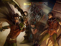 The pictures of Robin that look like paintings are by Jo Chen. I'm not too happy with these wallpapers-- they're a little cluttery-- but maybe someone will like them.